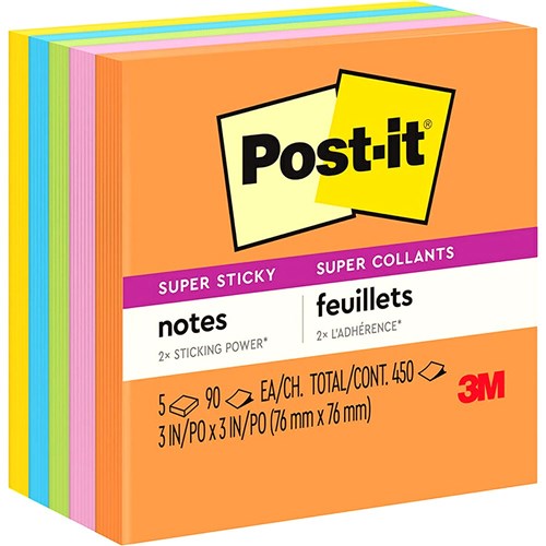 Post-it 654-5SSJOY Super Sticky Notes 76 x 76mm Summer Joy Pack of 5 3021990 In Stock Low Stock Low Stock Please See Attributes