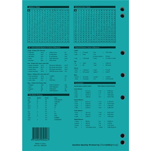 4 year calendar, activity page, maths tables & red margin.