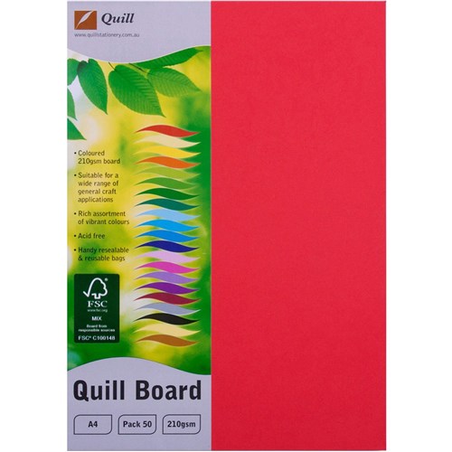 Quill Board A4 210gsm Hot Colours Assorted Pack of 50