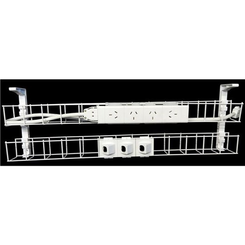 Rapidline Dual Tier Cable Basket Kit 950mm 4GPO+3Data + 1.5m Interconnecting Lead Wht