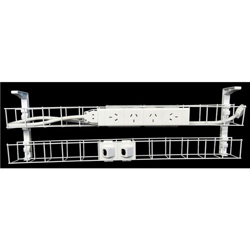 Rapidline Dual Tier Cable Basket Kit 950mm 4GPO+3Data + 1.5m Interconnecting Lead Wht