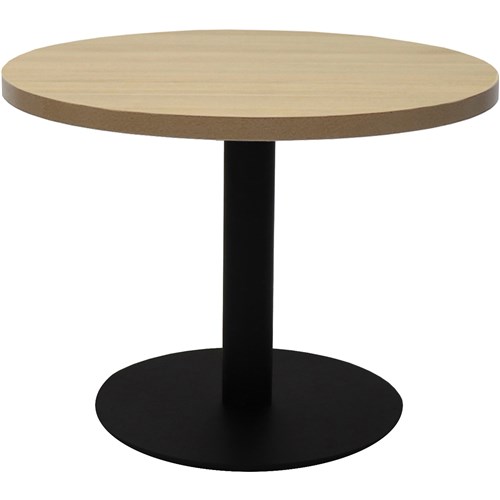 Rapidline Estillo Disc Base Round Coffee Table 600D x 450mmH Oak Top Black Base