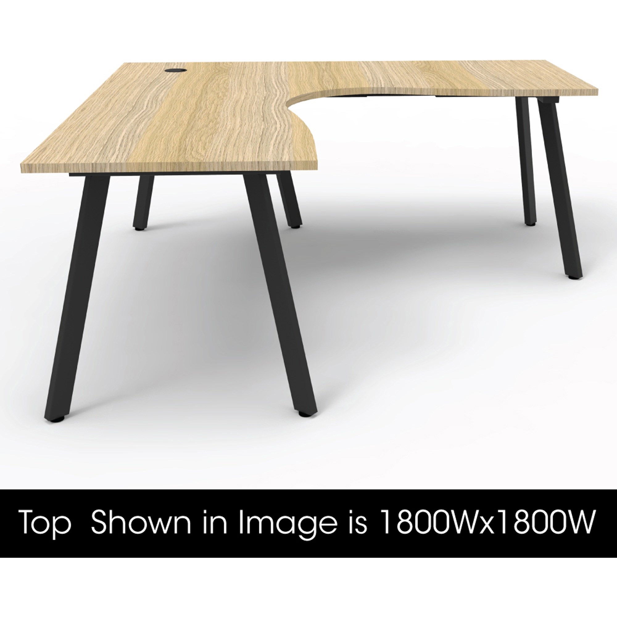 Natural Oak work surface with 80mm diameter cable entry hole.
