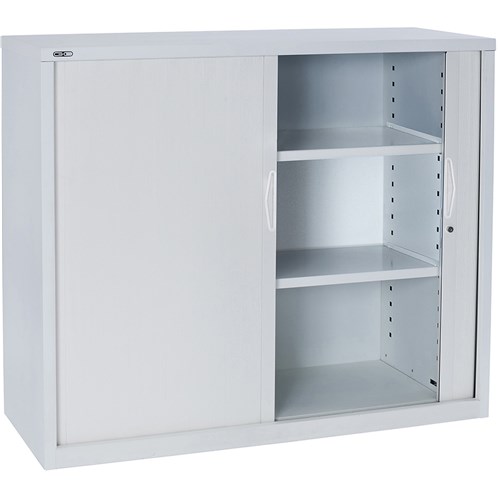 Rapidline Go Tambour Door Cupboard Includes 2 Shelves 900W x 473D x 1016mmH White