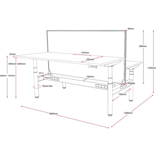 Unit Dimension: 1800mm W x 1500mm D x 620-1270mm H.