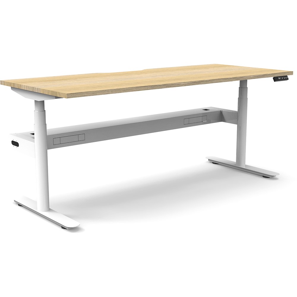 70mm diameter round column legs. 700mm wide foot size with adjustable leveling feet, return foot: 700mm. Comes with cable tray for cable management.