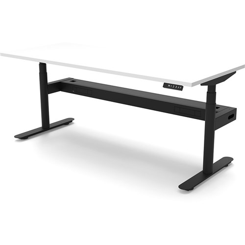 Comes with cable tray for cable management. E0 rated top. Powdercoat base.