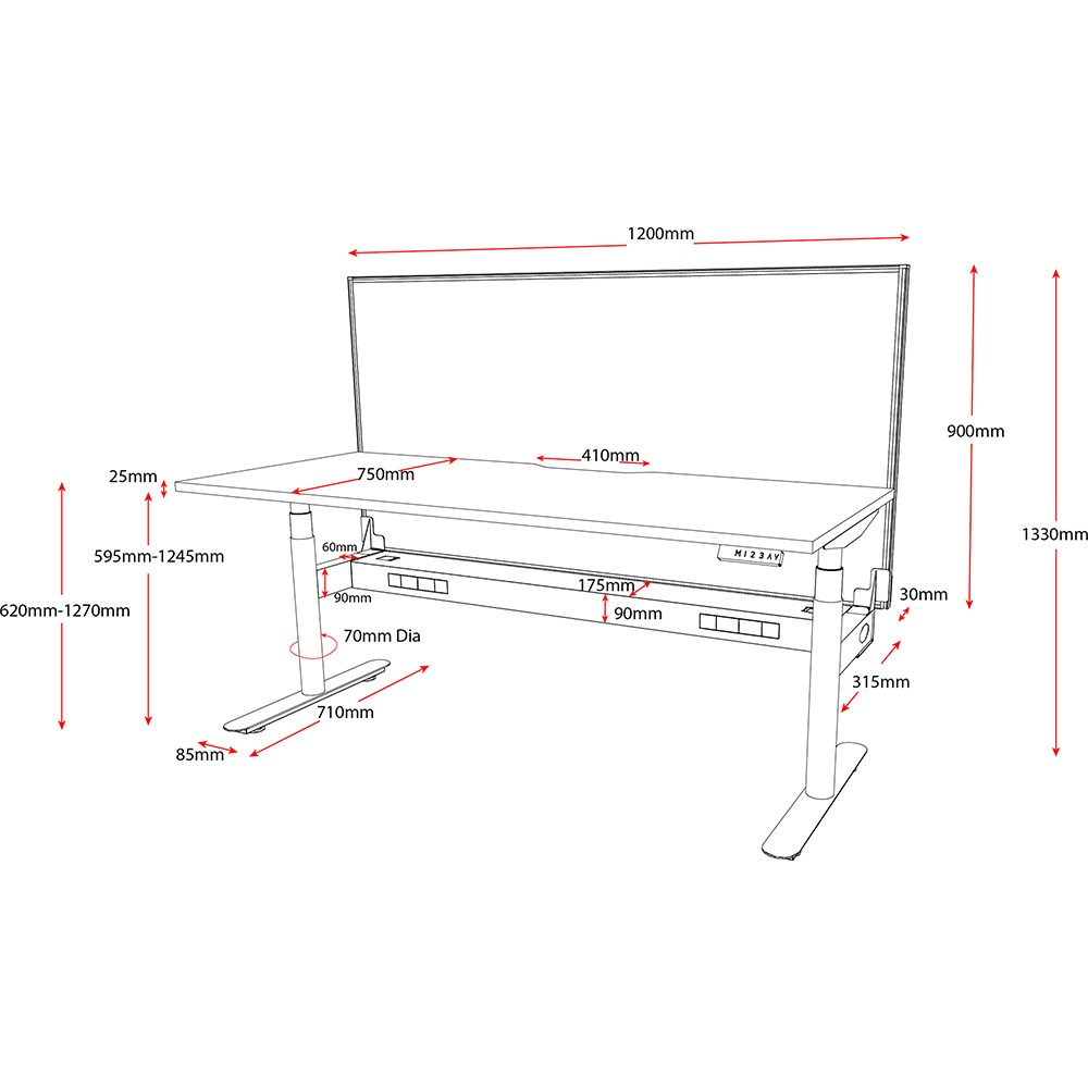 620-1270mm height range for desk.