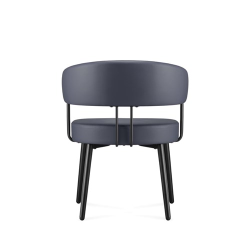 • Robust steel 4 leg frame finished in black powder coat French Navy PU leather seat.