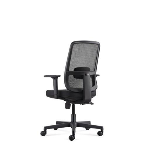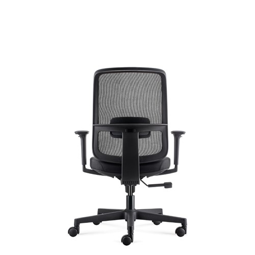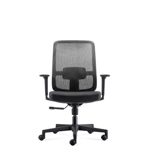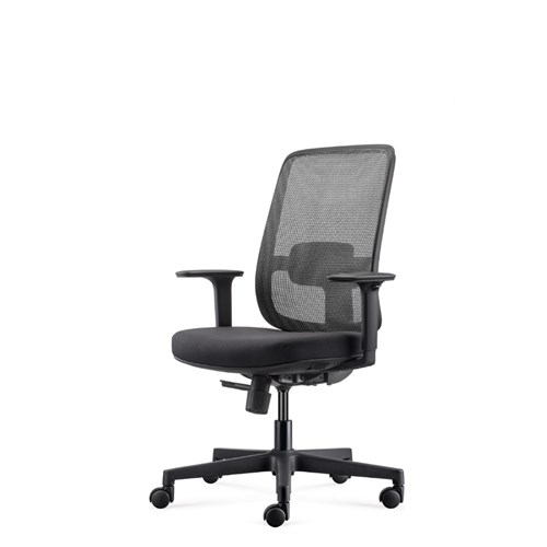 • Lotto medium back operator chair. Medium back. Black with grey backed mesh and black fabric seat. Black PP and fiberglass mix frame.