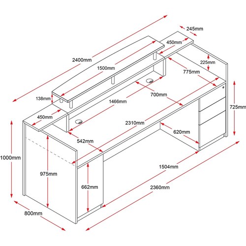 Unit Dimensions: 2400mm W x 800mmD x 1150mmH.