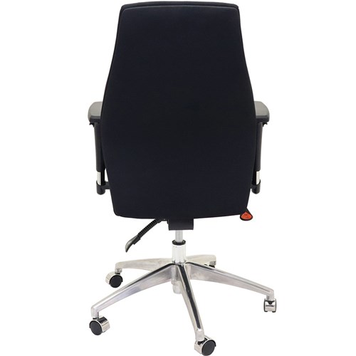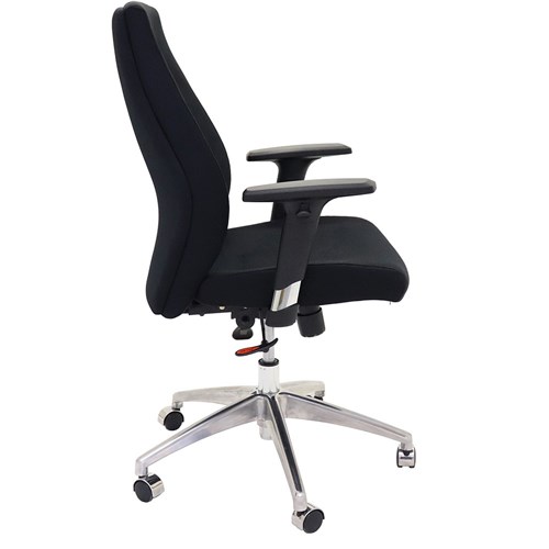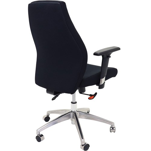 Executive task chair with high back, adjustable arms and polished aluminium spider base.