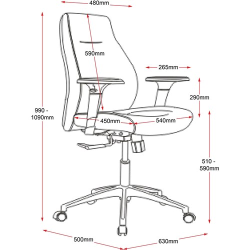 Chair Dimensions: 540W x 450D x 510-590mmH.