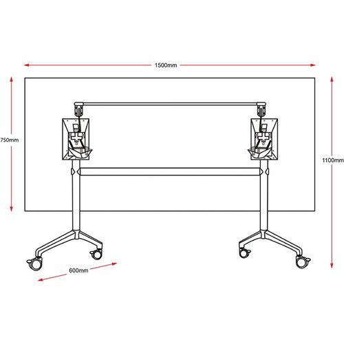 Rapidline Typhoon Flip Top Table 1500W x 750D x 750mmH White Top All Black Frame