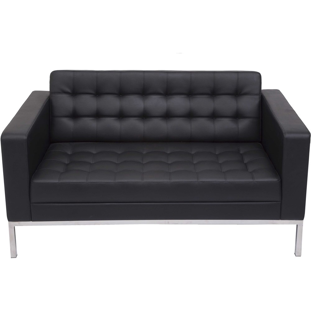 • Rapidline Venus Double Sofa Stainless Steel Frame Button Finish Black PU Upholstery