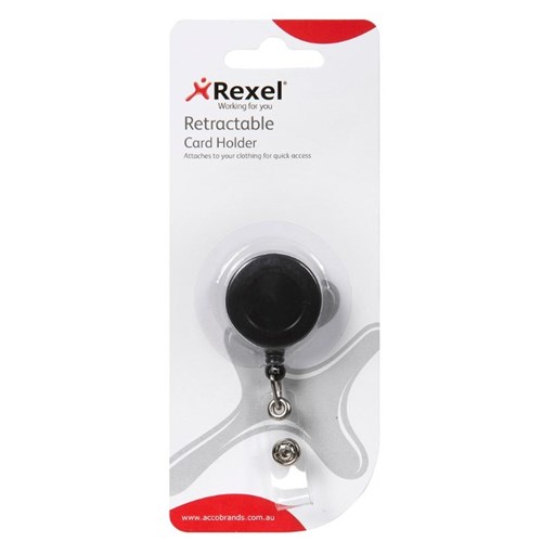REXEL CARD HOLDER RETRACTABLE With Strap Lockable Blister Pack
