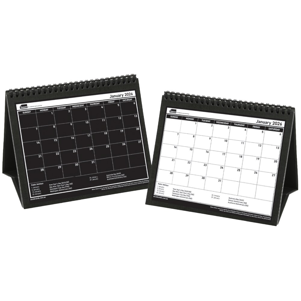 • Stylish desk calendar to sit on your desk at the office or at home.