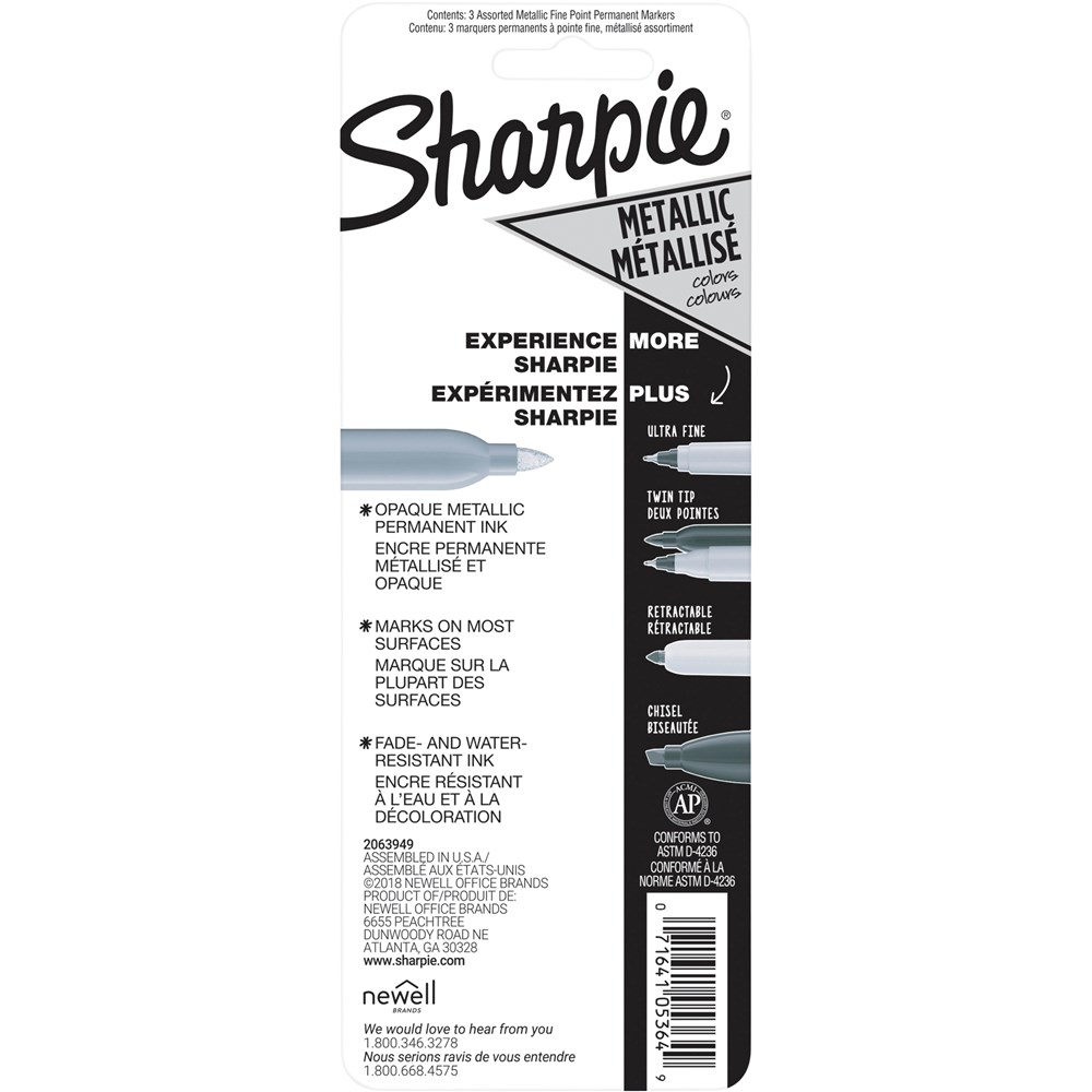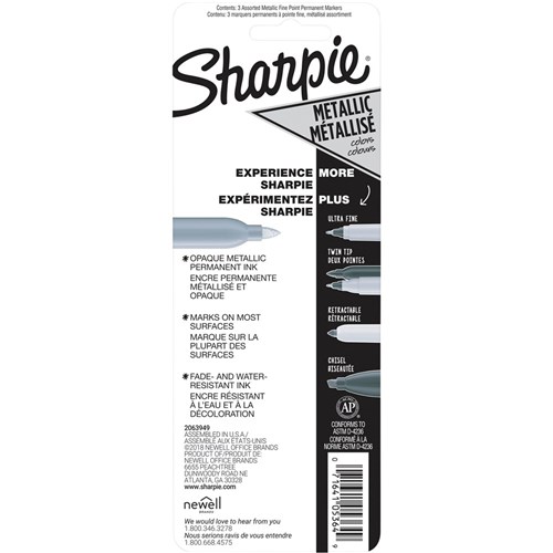 Sharpie Metallic Marker Fine Point 1mm Permanent Assorted Pack of 3
