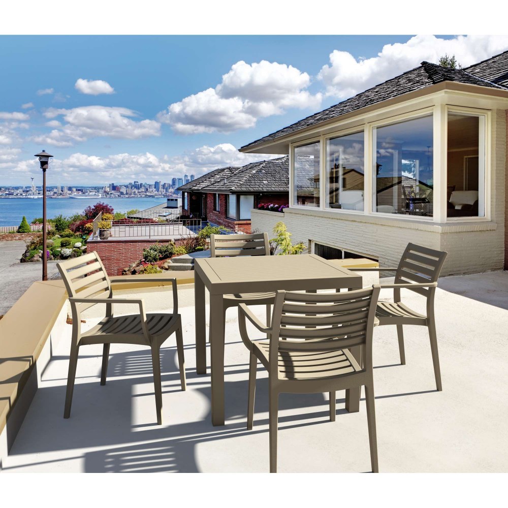 Siesta Ares 80 5 Piece Outdoor Dining Set With Artemis Arm Chairs Taupe