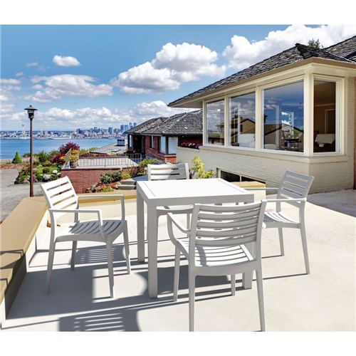 Siesta Ares 80 5 Piece Outdoor Dining Set With Artemis Arm Chairs White