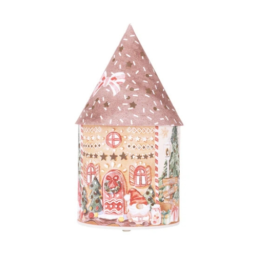 A glowing gingerbread house decoration that adds a cheerful touch to Christmas displays.