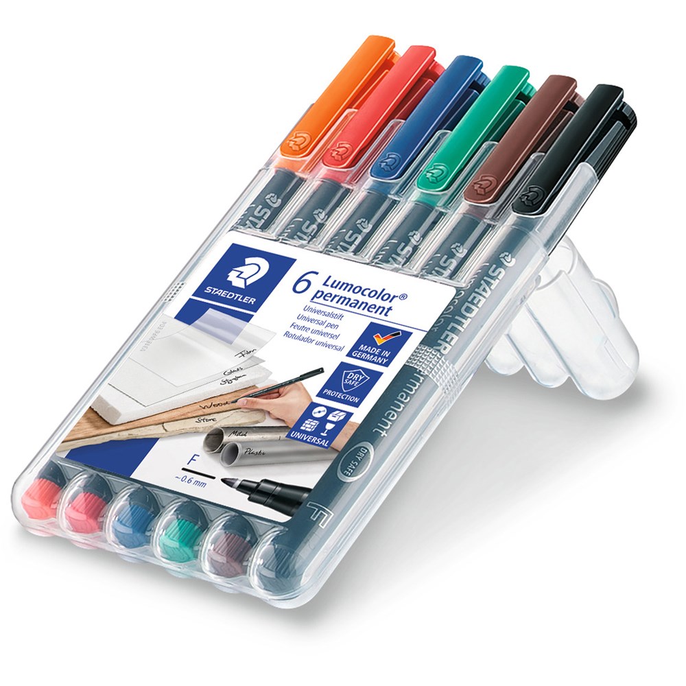 Staedtler 318 Lumocolor Pen Permanent Fine 0.6mm Assorted Wallet of 6