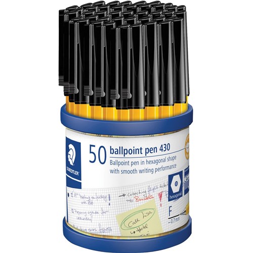 Staedtler 430 Stick Ballpoint Pens Fine 0.7mm Black Cup of 50