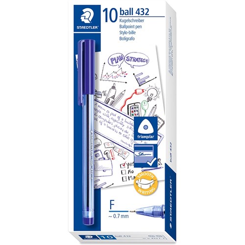 Staedtler 432 Stick Triangular Ballpoint Pen Medium 1.0mm Blue Box of 10