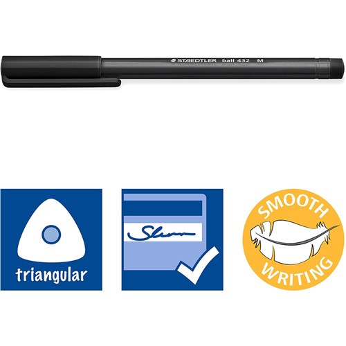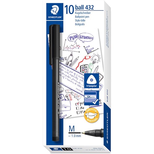 Staedtler 432 Stick Triangular Ballpoint Pen Medium 1.0mm Black Box of 10