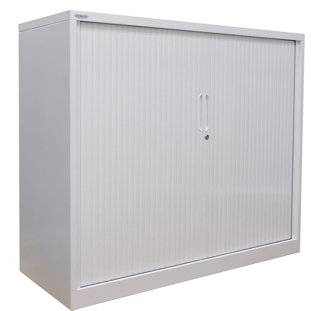 Steelco Tambour Door Cupboard Includes 3 Shelves 1200W x 463D x 1200mmH Silver Grey