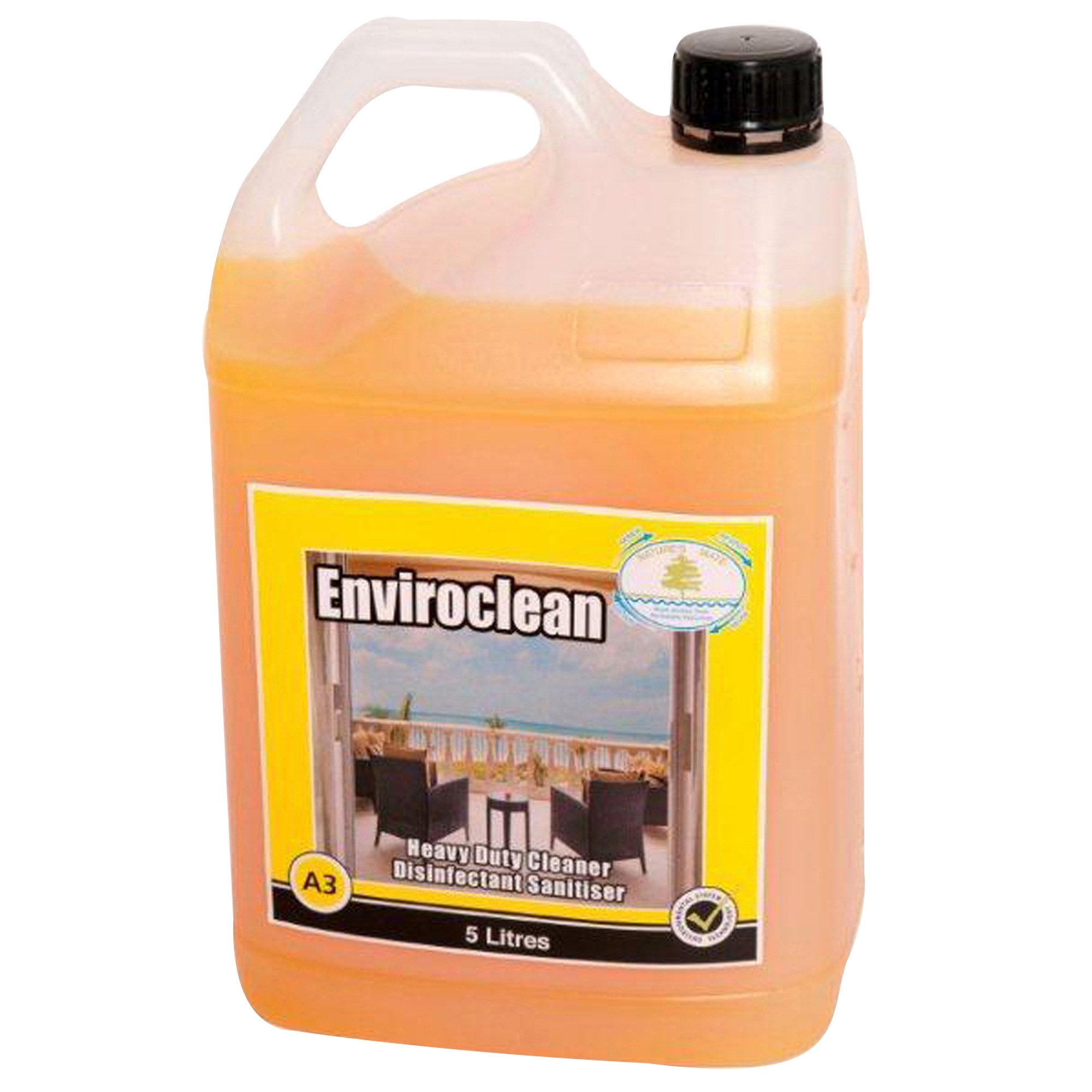 Enviroclean is a bright yellow liquid combining a heavy-duty detergent system with a powerful disinfectant and natural citrus solvents.