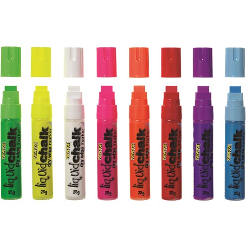 Texta Jumbo Liquid Chalk Markers Dry Wipe Chisel 15mm Assorted Wallet Of 4