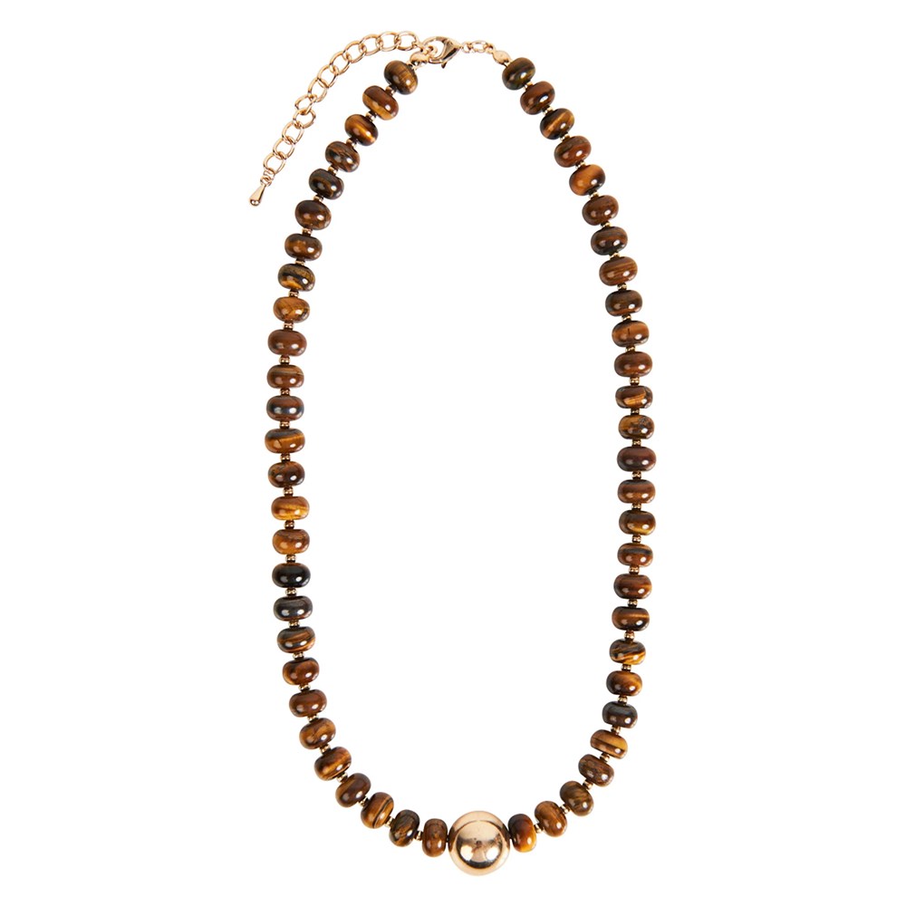 Adorned with earthy natural stones, this striking necklace draws the eye with its unique beauty..