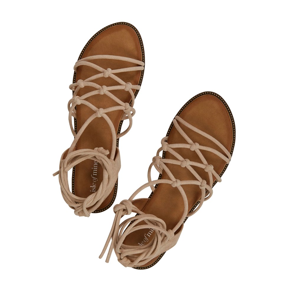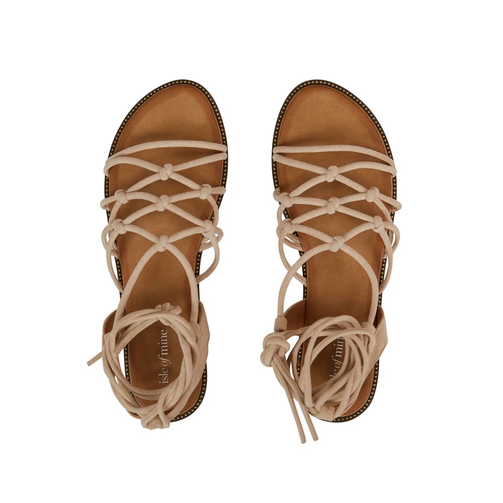 Crafted in ultra-soft vegan leather with delicate knotted straps and a lace-up styling..