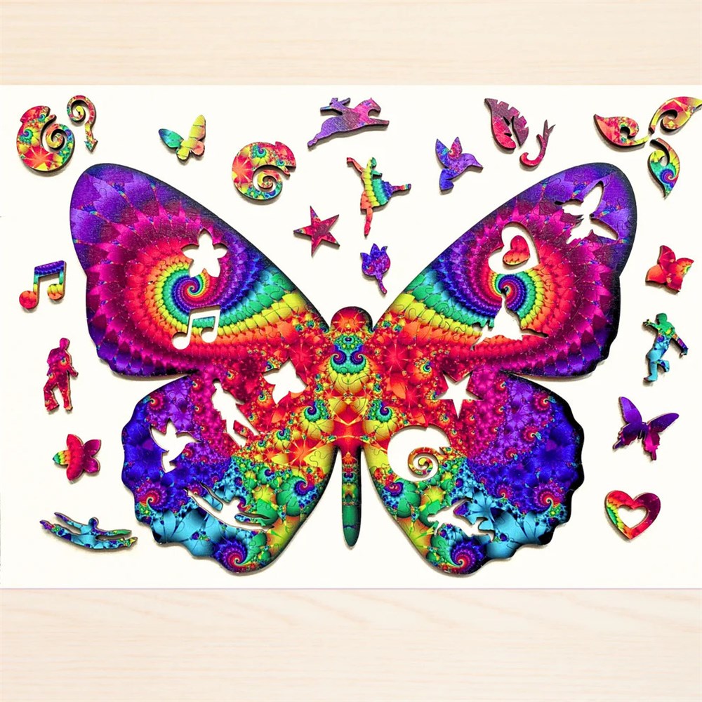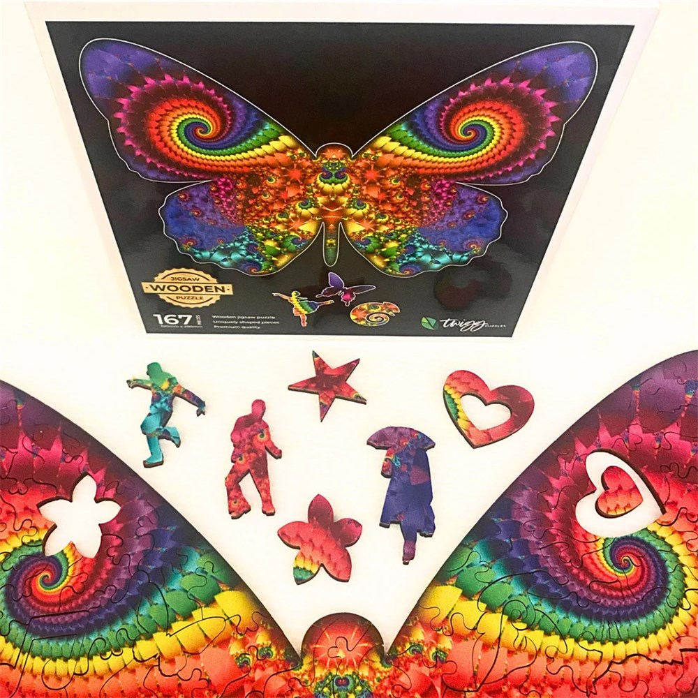 This wooden jigsaw puzzle is magnificent the butterfly shaped puzzle is made up of uniquely shaped, one-of-a-kind wooden puzzle pieces..