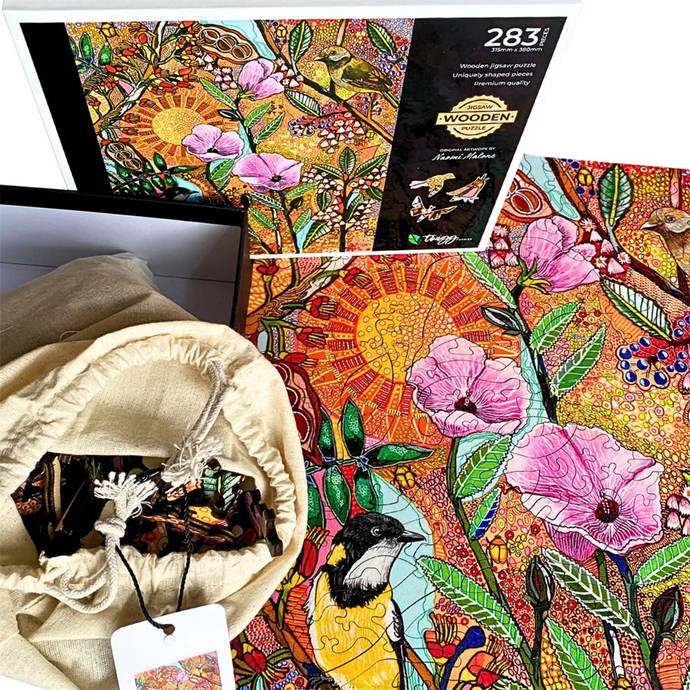 Pieces: 283 Puzzle Pieces Shape: Rectangle Size of puzzle: 315mm x 380mm Made of high-quality plywood Difficulty level: Medium to difficult..