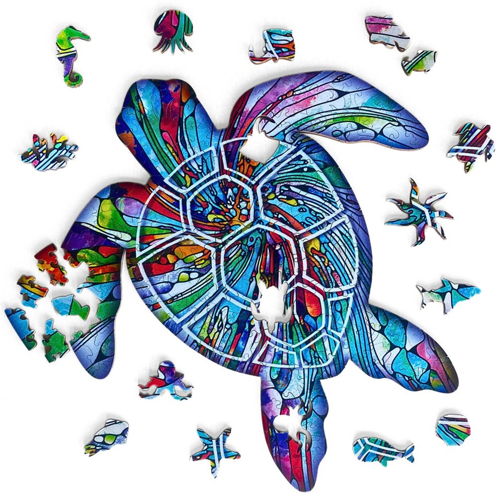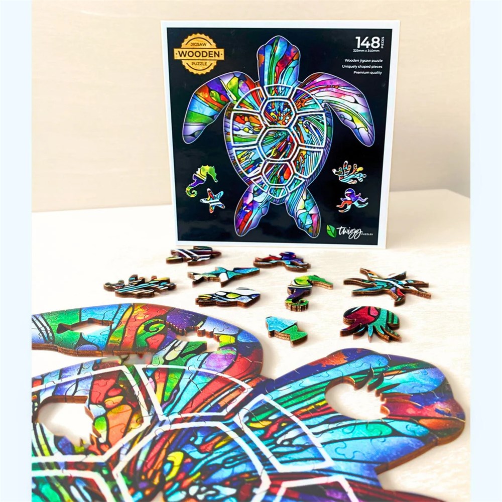 Number of Pieces: 148 puzzle pieces Shape: Turtle Size of the puzzle: 32cm x 34cm Difficulty level: difficult..