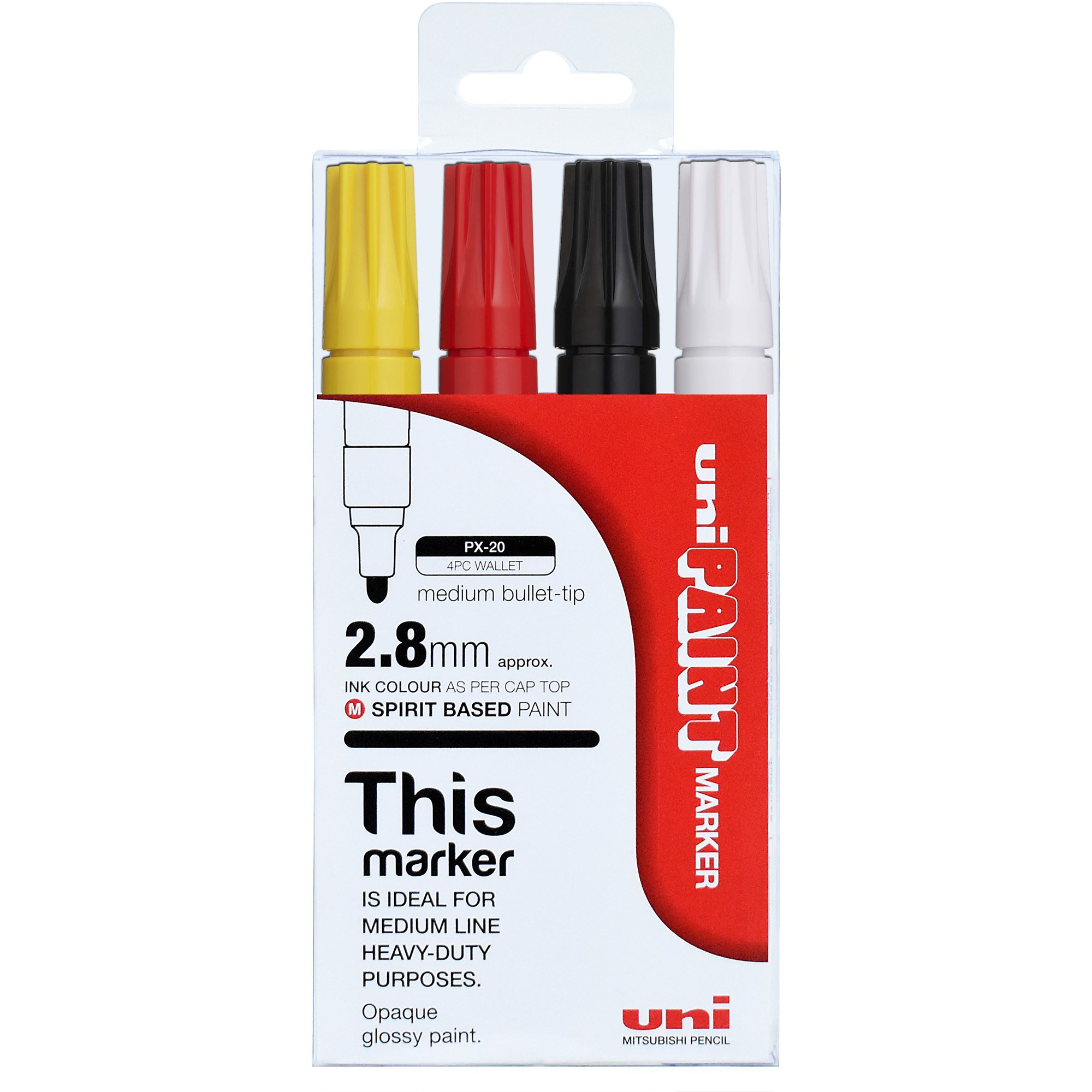 Uni-Ball PX-20 Paint Marker Bullet 2.8mm Assorted Colours Pack Of 4