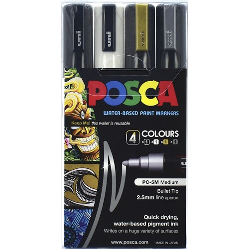 Uni Posca Paint Marker PC-5M Medium 2.5mm Bullet Tip Assorted Set of 4