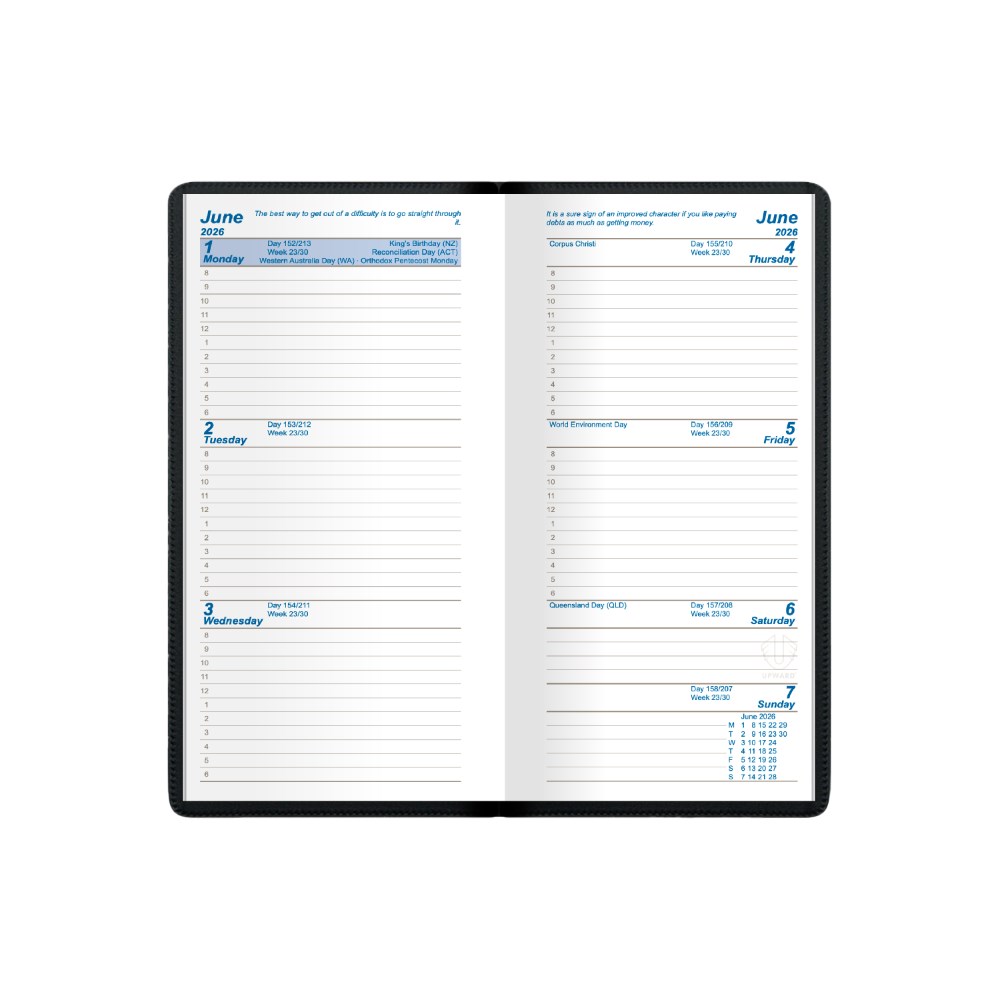 Upward Standard Diary B5 Vertical Week To View Black