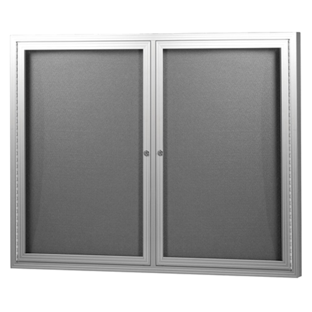 Visionchart Be Noticed Hinged 2 Door Notice Case 1220W x 48D x 915mmH Silver/Grey Fabric