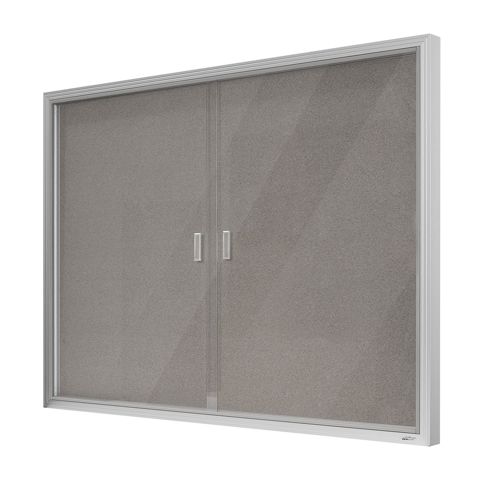 Visionchart Be Noticed Sliding 2 Door Notice Case 1220W x 48D x 915mmH Silver/Grey Fabric