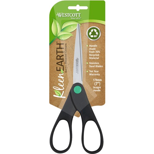 Westcott KleenEarth Scissors 178mm Straight Handle Black